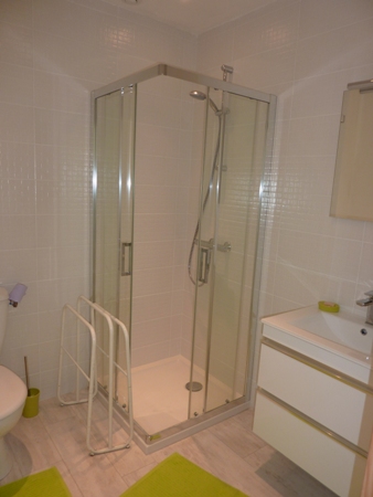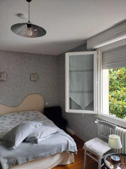Chambre avec lit (140 x190), salle de bain avec douche à l'italienne et accessoires adaptés